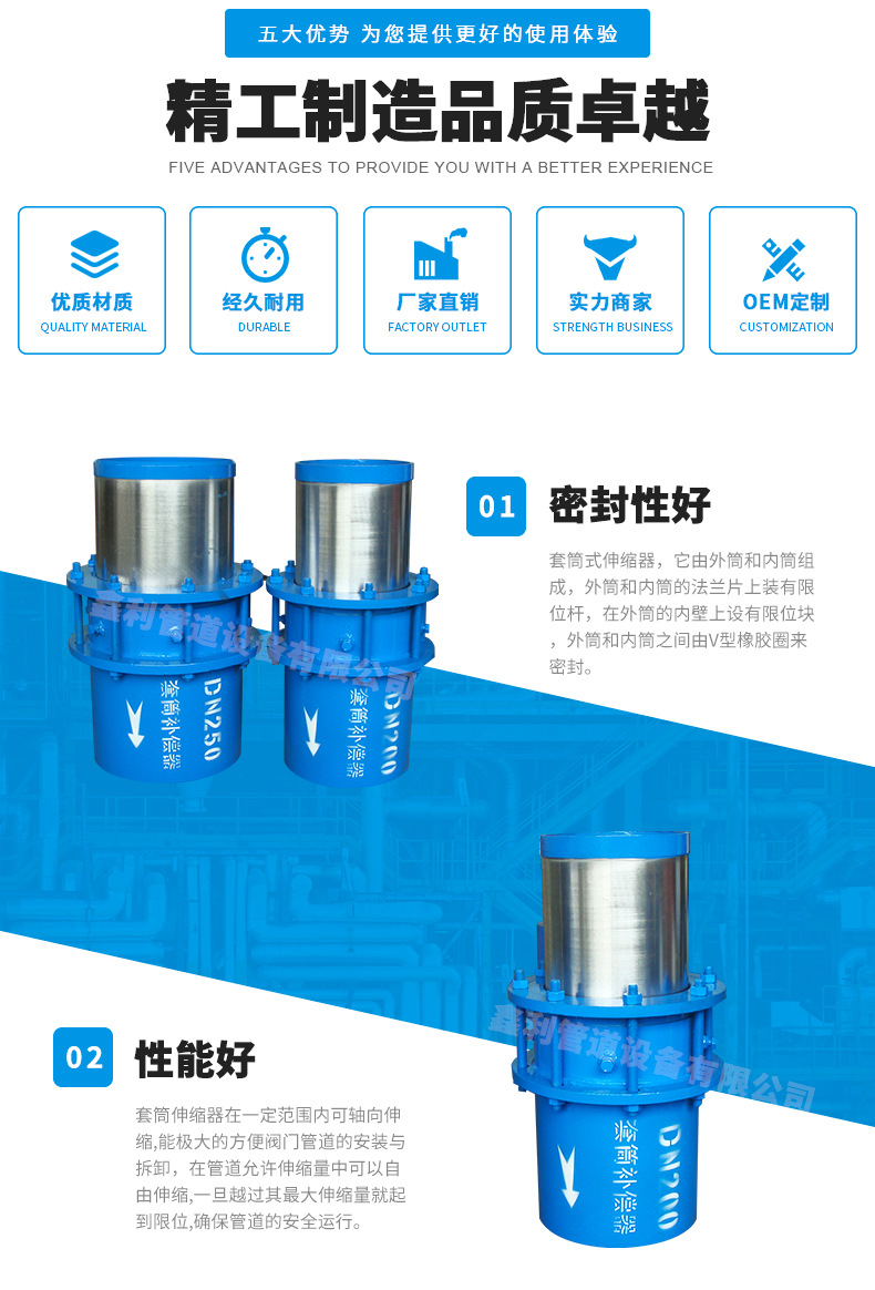 本問幫您解讀選擇套筒補(bǔ)償器有什么標(biāo)準(zhǔn)?,我公司伸縮器、補(bǔ)償器、傳力接頭、伸縮接頭、膨脹節(jié)等產(chǎn)品嚴(yán)格按照標(biāo)準(zhǔn)設(shè)計(jì)生產(chǎn),特殊規(guī)格型號可按用戶需要和要求訂做。質(zhì)量優(yōu)選,信譽(yù)至上,為用戶所想,為用戶所急,真誠熱心,以心換心是鑫利人的服務(wù)宗旨。官網(wǎng):/,官方熱線:400-6596-356
